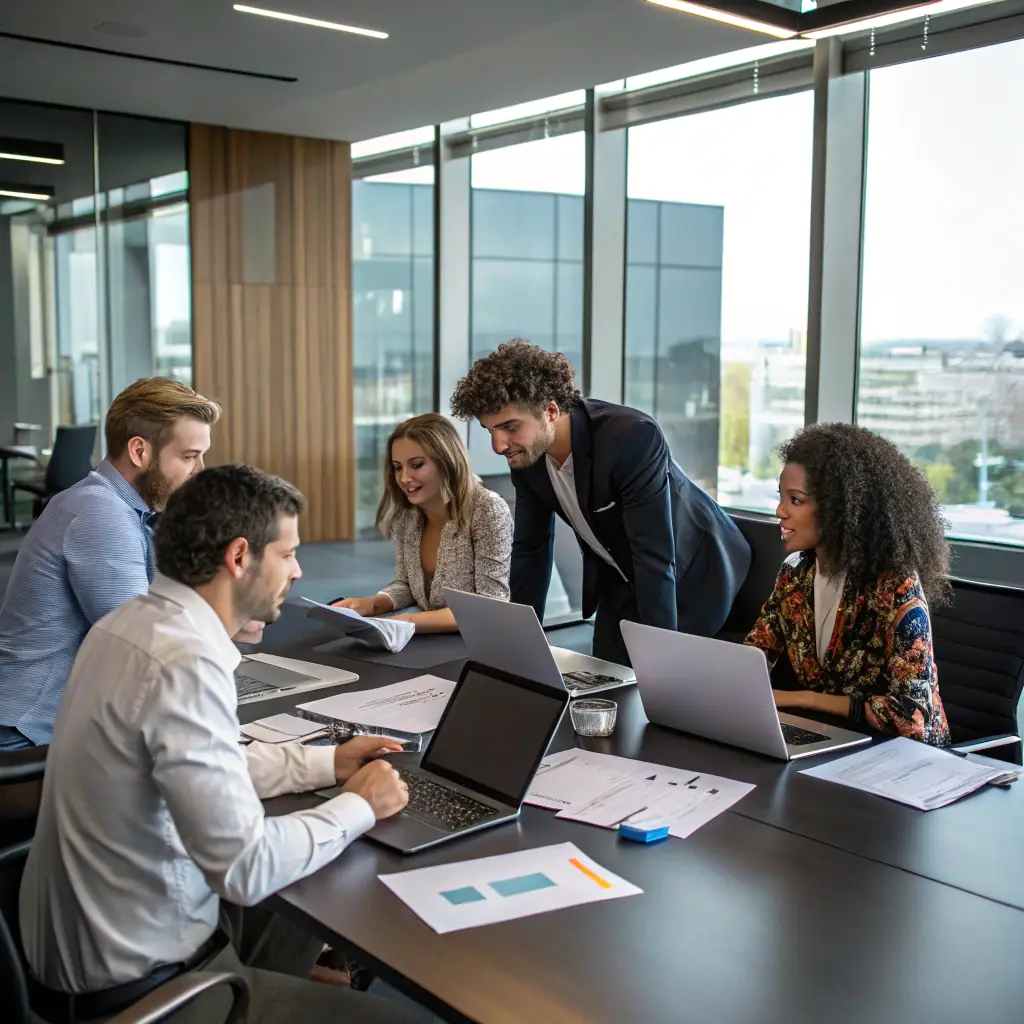 A dynamic digital marketing campaign visual, featuring a diverse group of people interacting with various devices, symbolizing the reach and engagement of a well-executed strategy.